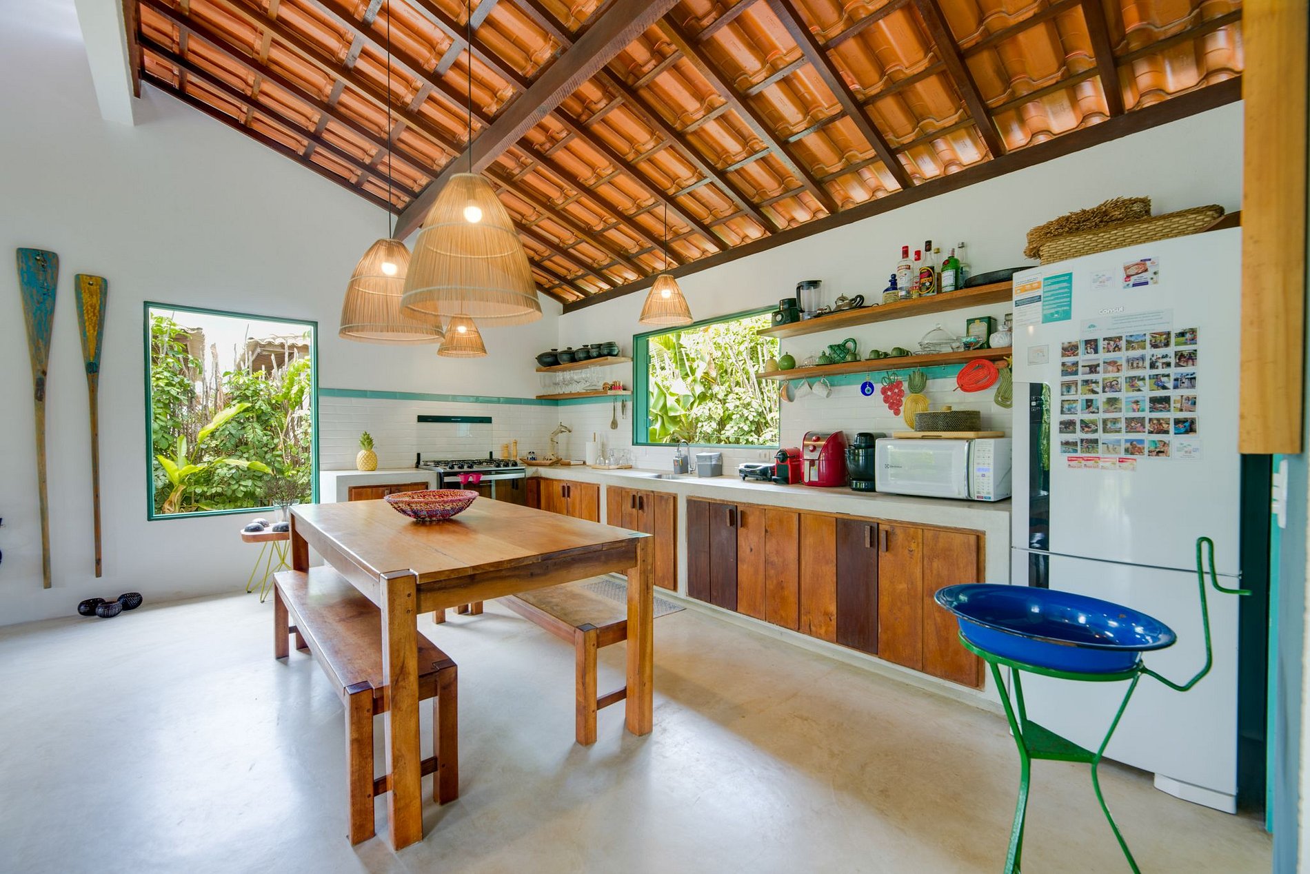 IG: @casatatu_ para mais fotos. A casa tem pé direito alto, a parede vazada propicia uma ventilação natural, tornando a casa mais arejada, aconchegante e clara. Com piscina privativa com água sempre morna. A casa é ampla, temos cozinha e sala de estar integradas! Em ambiente separado temos 3 suítes integrados por um amplo hall. Contamos com suíte extra com acesso pela varanda. Todos os quartos têm vista para piscina com total privacidade. Suíte 1: Cama queen e uma bicama de casal; Suíte 2: Cama king e duas bicamas de solteiro. Suíte 3: 01 Cama King e 01 reversível de casal. As suítes são amplas, com ar condicionado e banho quente. A cozinha é equipada com todos os utensílios necessários para uma boa estadia, varandas com redes de descanso, jardins gramados com coqueiros e muitas flores. Varanda principal com mesa de jantar. Temos cadeirinha de alimentação, berço e banheira para bebês. Nossa piscina é perfeita e sempre com água morna.