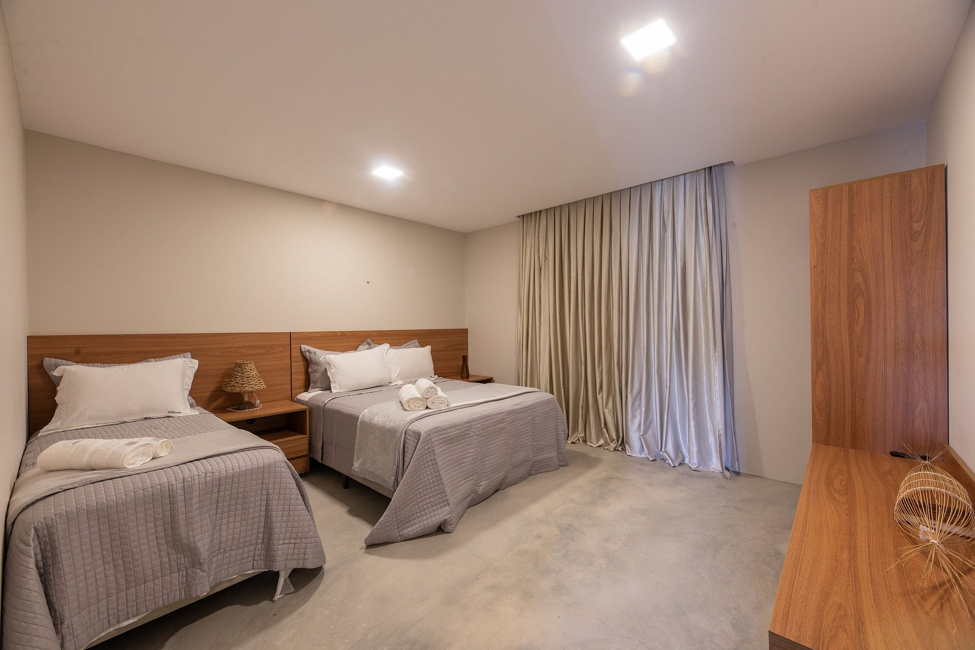Suíte 2 (3 hóspedes): Cama Queen + Cama Solteiro;