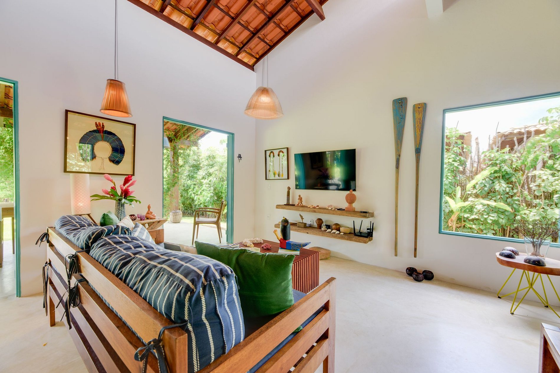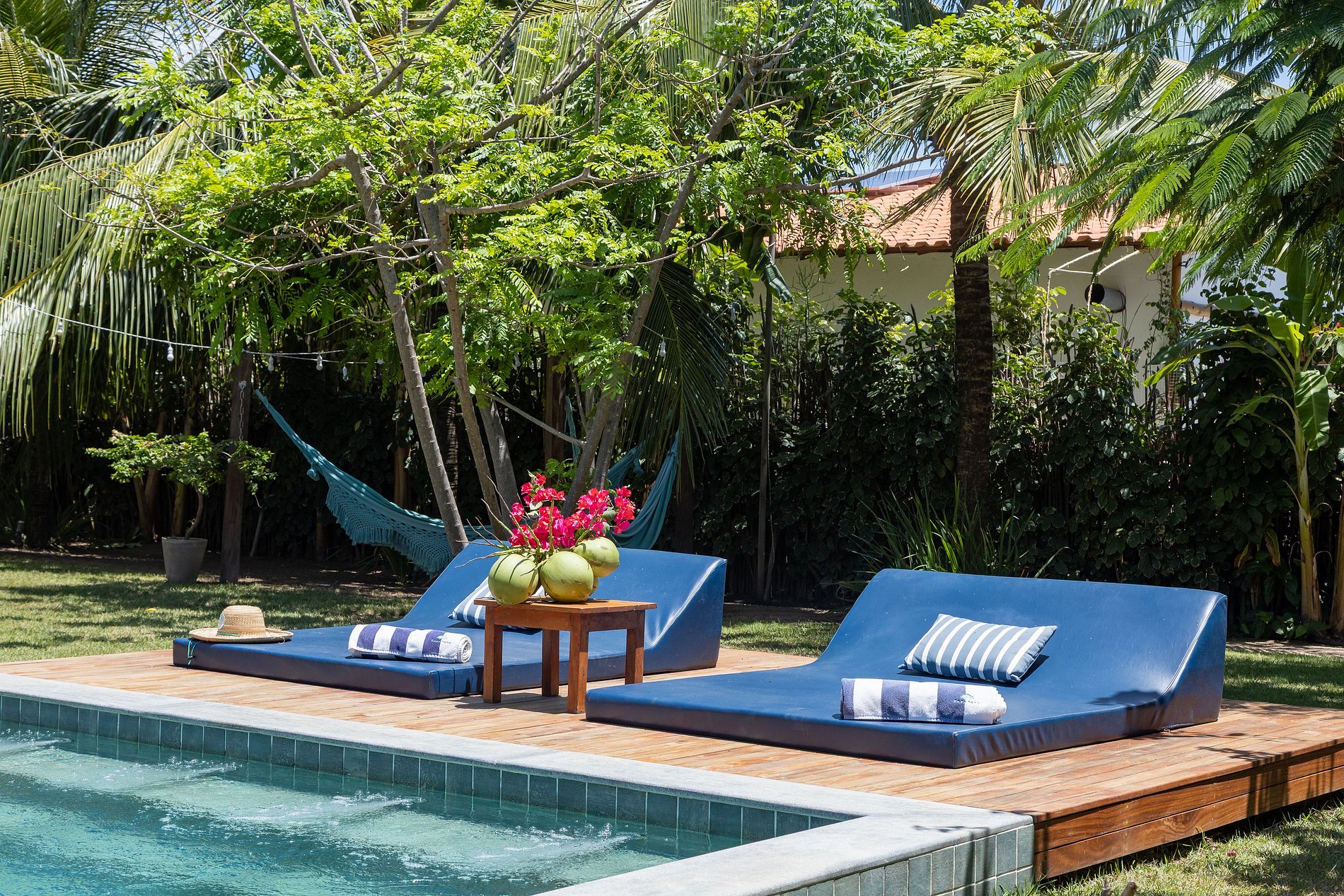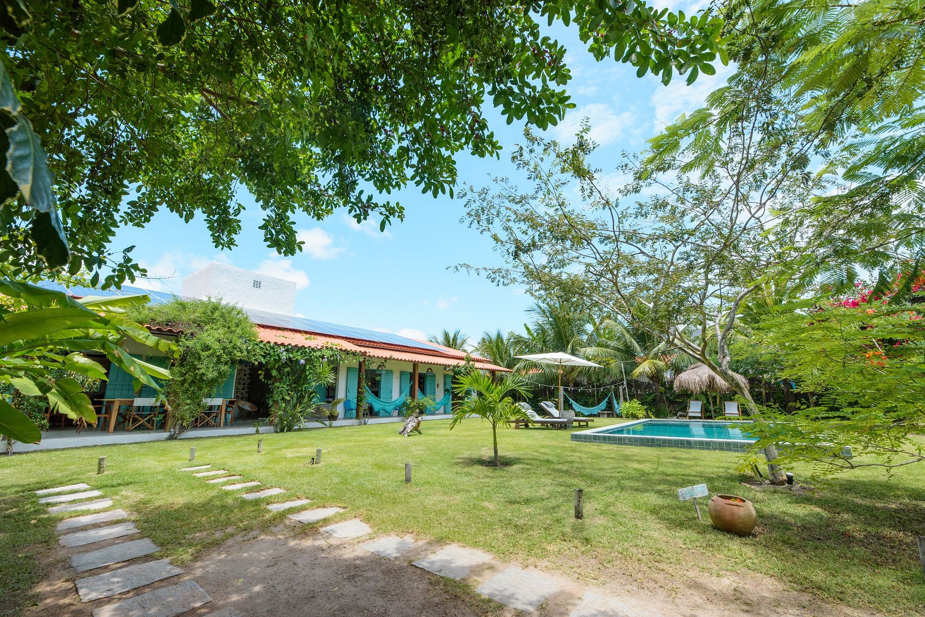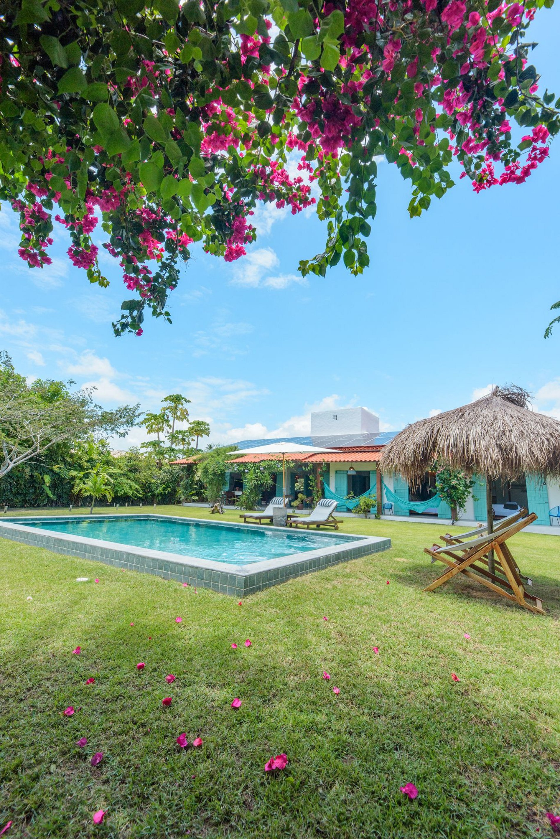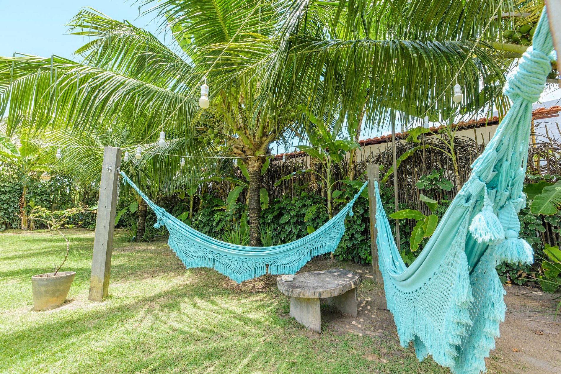 IG: @casatatu_ para mais fotos. A casa tem pé direito alto, a parede vazada propicia uma ventilação natural, tornando a casa mais arejada, aconchegante e clara. Com piscina privativa com água sempre morna. A casa é ampla, temos cozinha e sala de estar integradas! Em ambiente separado temos 3 suítes integrados por um amplo hall. Contamos com suíte extra com acesso pela varanda. Todos os quartos têm vista para piscina com total privacidade. Suíte 1: Cama queen e uma bicama de casal; Suíte 2: Cama king e duas bicamas de solteiro. Suíte 3: 01 Cama King e 01 reversível de casal. As suítes são amplas, com ar condicionado e banho quente. A cozinha é equipada com todos os utensílios necessários para uma boa estadia, varandas com redes de descanso, jardins gramados com coqueiros e muitas flores. Varanda principal com mesa de jantar. Temos cadeirinha de alimentação, berço e banheira para bebês. Nossa piscina é perfeita e sempre com água morna.
