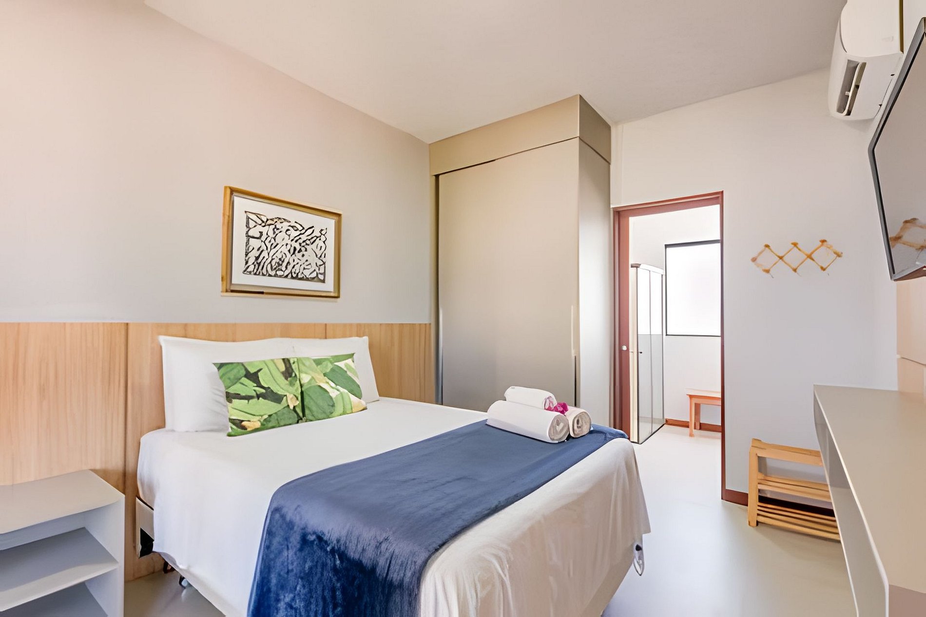 Suíte 1 (3 hóspedes-Térrea): Cama de Casal + Cama Solteiro (Bicama)
