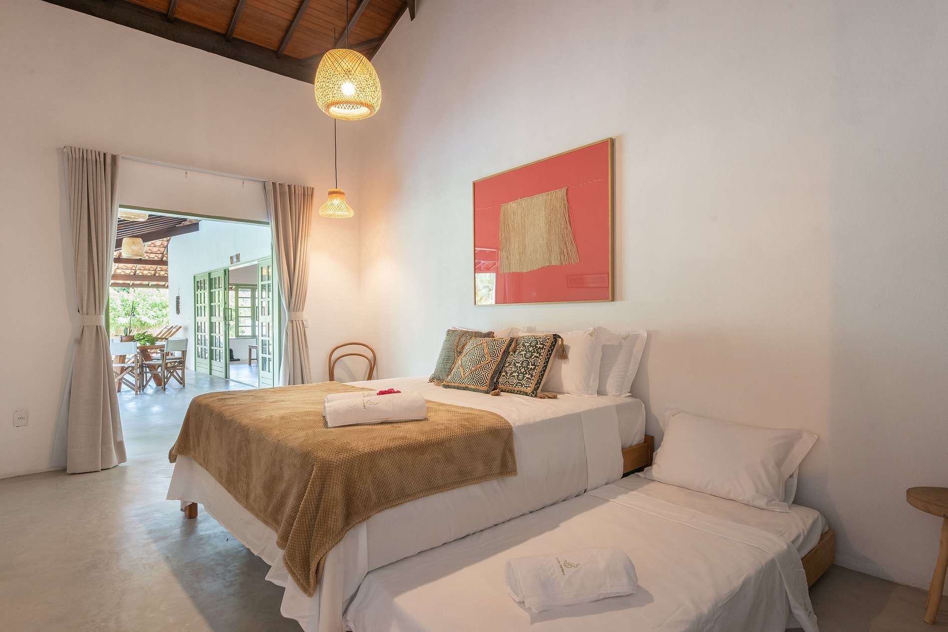 Suíte 1 (4 hóspedes): Cama King + 2 cama de solteiro (Bicama)