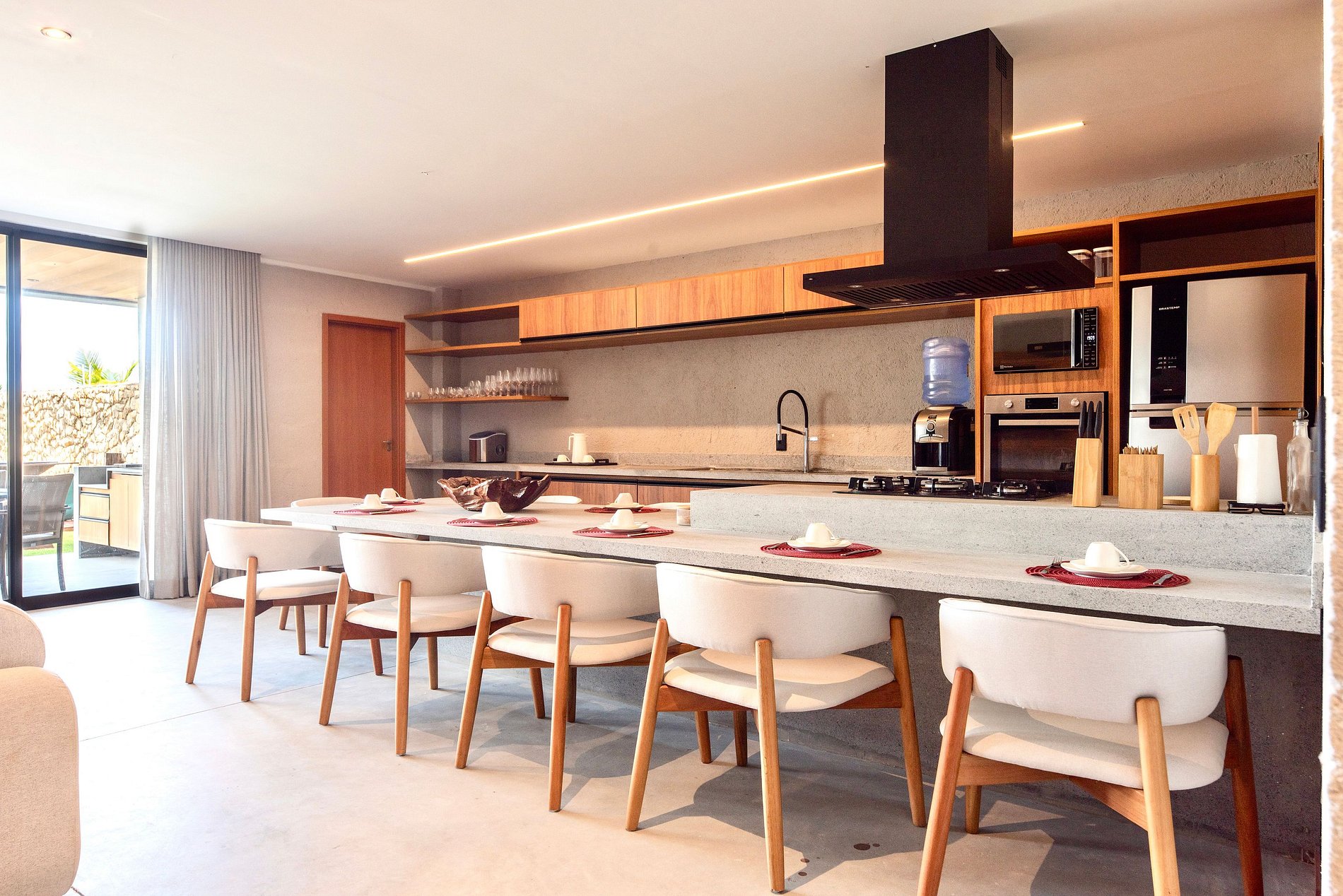 Cozinha: A cozinha é completa e conta com o necessário para uma boa estadia. Padrão M.Stays. A casa conta ainda com churrasqueira móvel, cadeiras de praia e guarda-sol do condomínio, e caixa térmica. Rooftop com vista mar, Smart-TV, adega e cervejeira. Disponibilizamos até 01 berço e 01 cadeira de alimentação para crianças de até 2 anos (sob reserva).