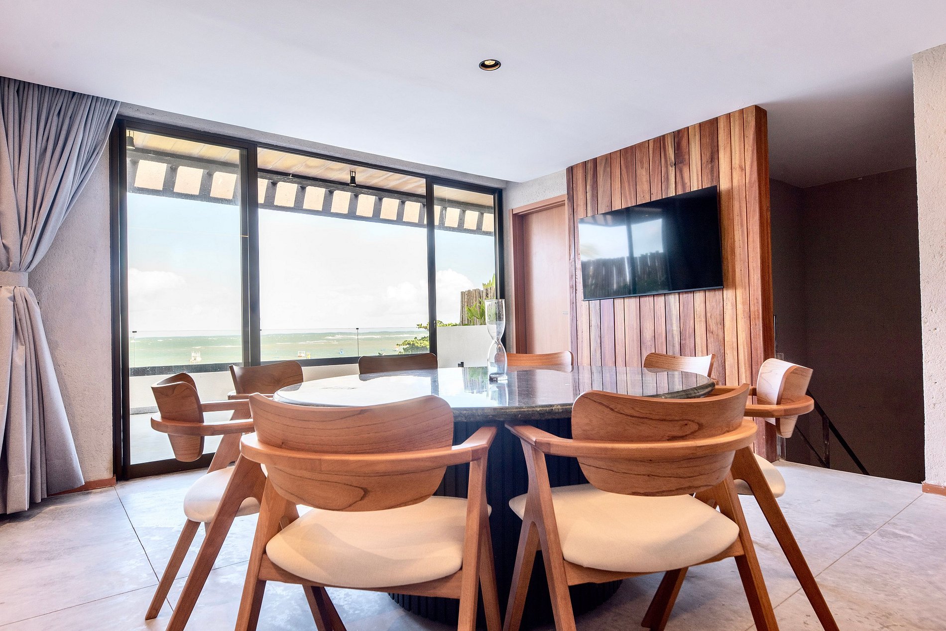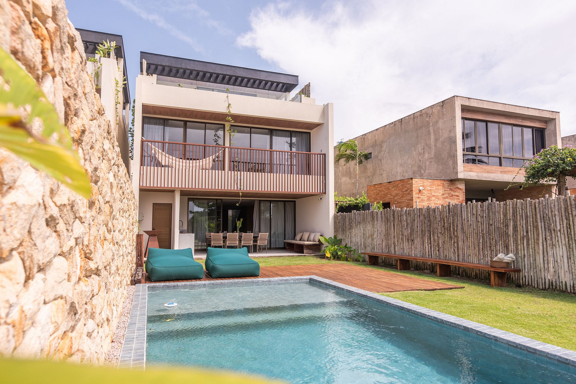 Casa à beira-mar na Praia do Marceneiro, em condomínio fechado com portaria 24h. Acomoda até 15 hóspedes e oferece piscina privativa, enxoval completo, cozinha totalmente equipada, banho quente e ar-condicionado em todas as suítes. A área social conta com Smart TV e Wi-Fi. O destaque é o rooftop climatizado, com TV e vista panorâmica para o mar, perfeito para relaxar e contemplar. Para mais conforto, os serviços de cozinha e limpeza já estão incluídos na diária.